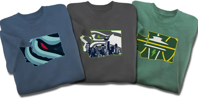 Celebrate Washington pride with Desteenation’s Sport of The State collection.  Sustainably made tees inspired by Seattle’s teams and crafted for comfort, quality, and hometown spirit. We have them all. Kraken, Mariners, Reign, Seahawks, Sounders,Storm, and SuperSonics. View the entire collection here.