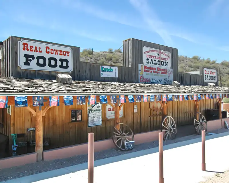 A truly, western saloon and a home away from home for real-live Arizona cowboys and girls, The Buffalo Chip Saloon gives its patrons an authentic taste of all things country western. Not only do they have activities aplenty, including free dance lessons, live music, horseshoes, volleyball, tire swings and tether ball, pool tables and arcade games, they serve up what is arguably the best saloon food you’ll ever eat. Mesquite smoked meats, buttermilk biscuits, fried okra and cowboy beans make for some tasty victuals, and no one can pass up the campfire s’mores served at your table in a nifty cast-iron dish. Part of the Cave Creek community since 1951.