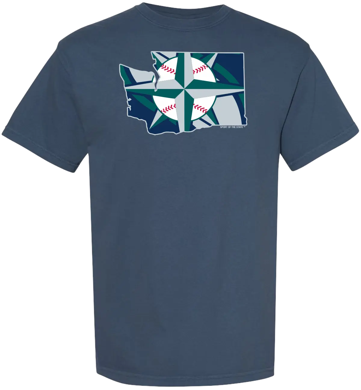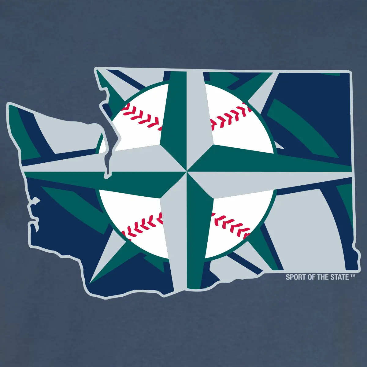 A design that points true north. The Mariners Sport of The State tee blends Washington pride with the unmistakable compass star that defines Seattle baseball. Centered within the state outline, this design captures the balance of direction, precision, and pride that drives the game and the fans who love it.